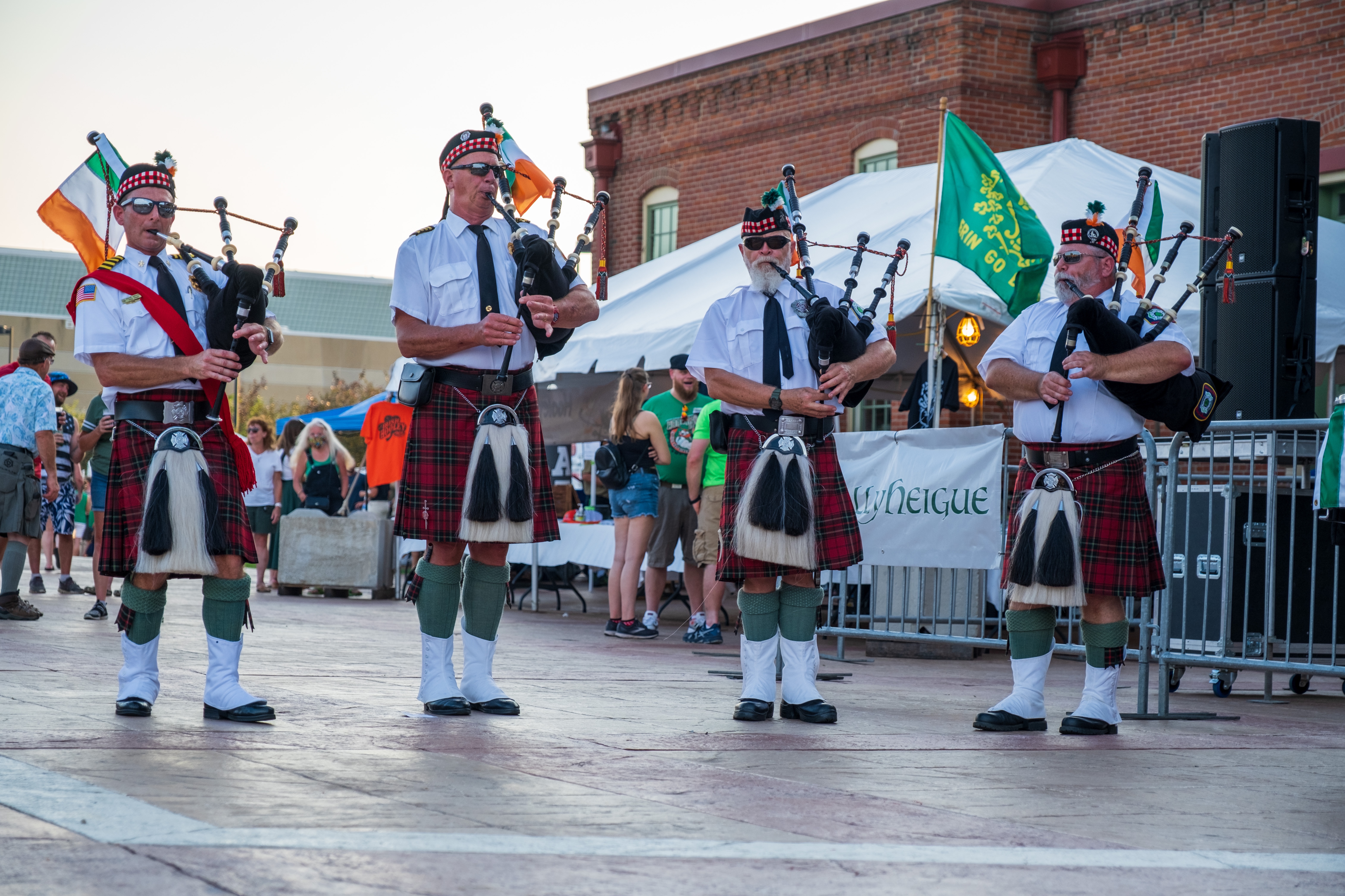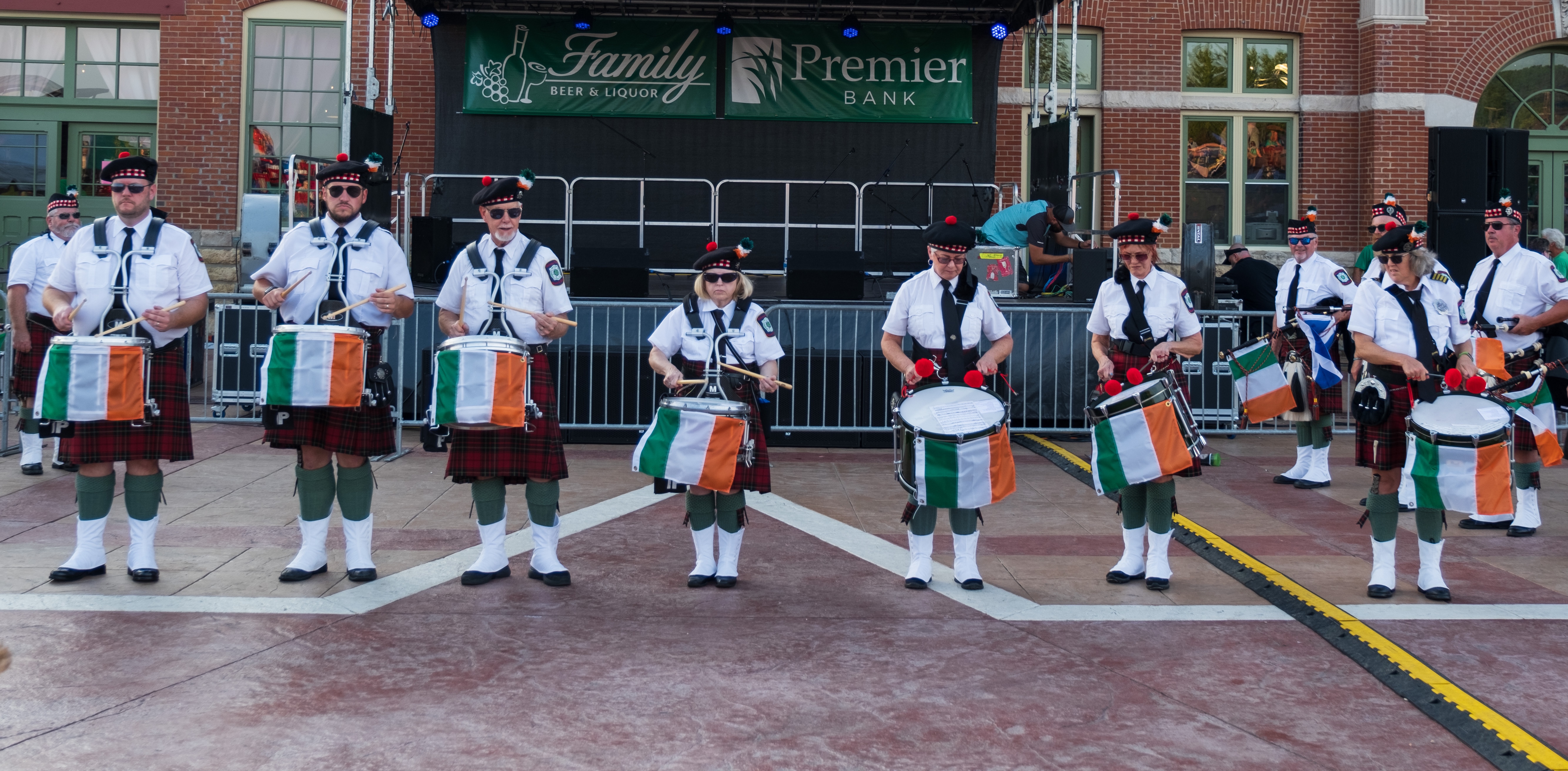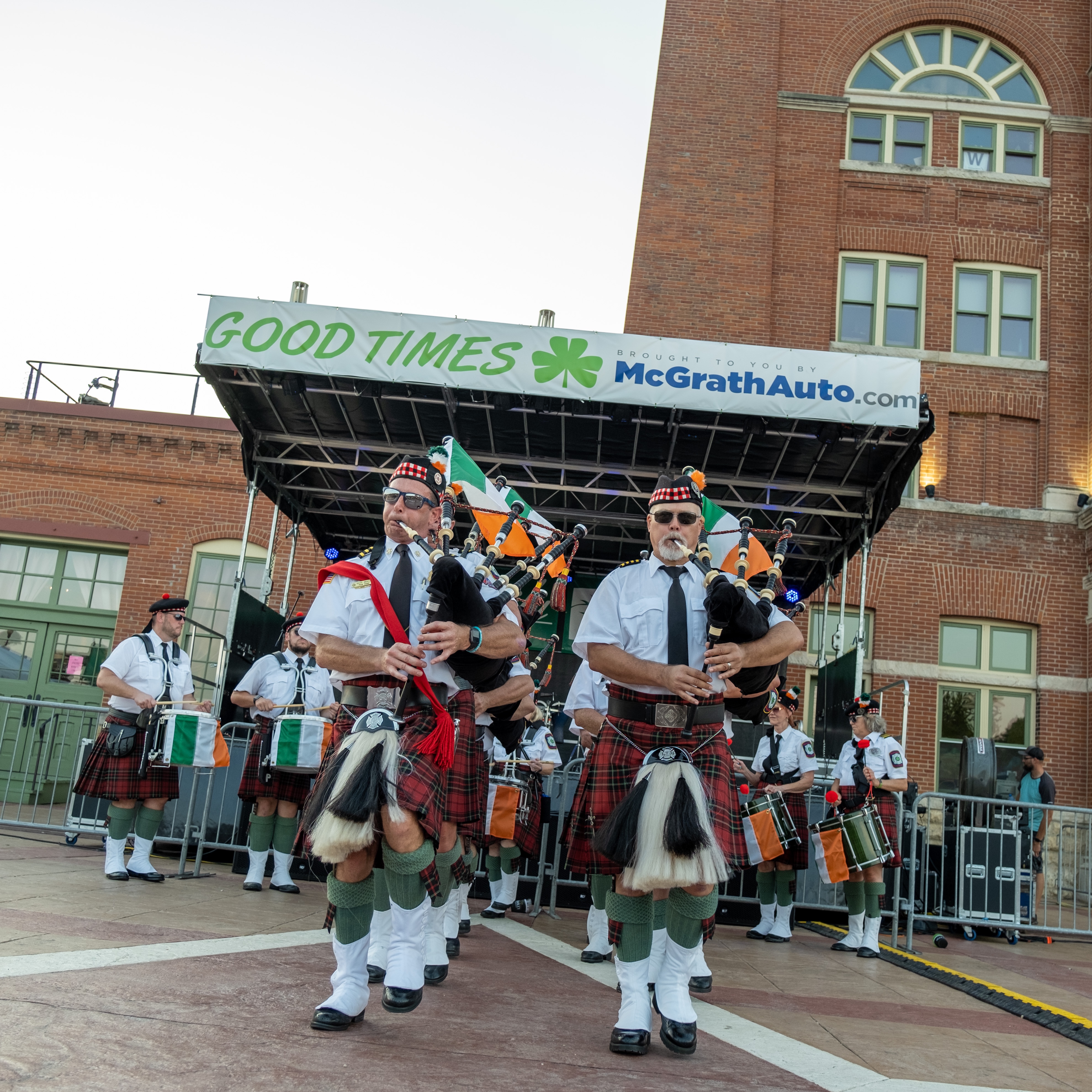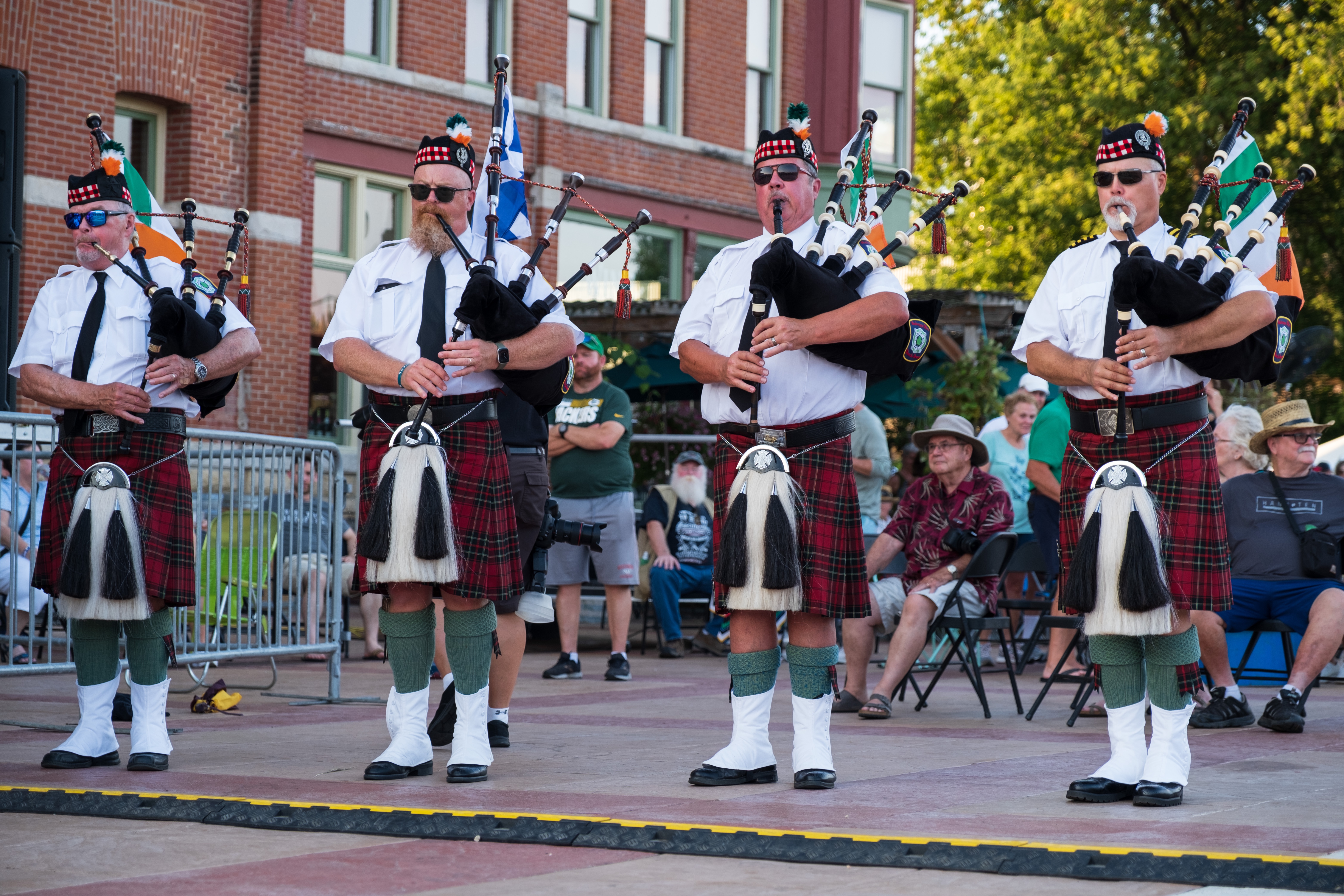 ‘Twas a fine day along the Mississippi River in Dubuque, Iowa, yesterday. After a year’s pandemic hiatus, the Hooley was back. The Dubuque Fire Pipes & Drums were proud to be part of a robust line-up. It was good to “celebrate living,” as MC and musician Ian Gould reminded all of us throughout the day.