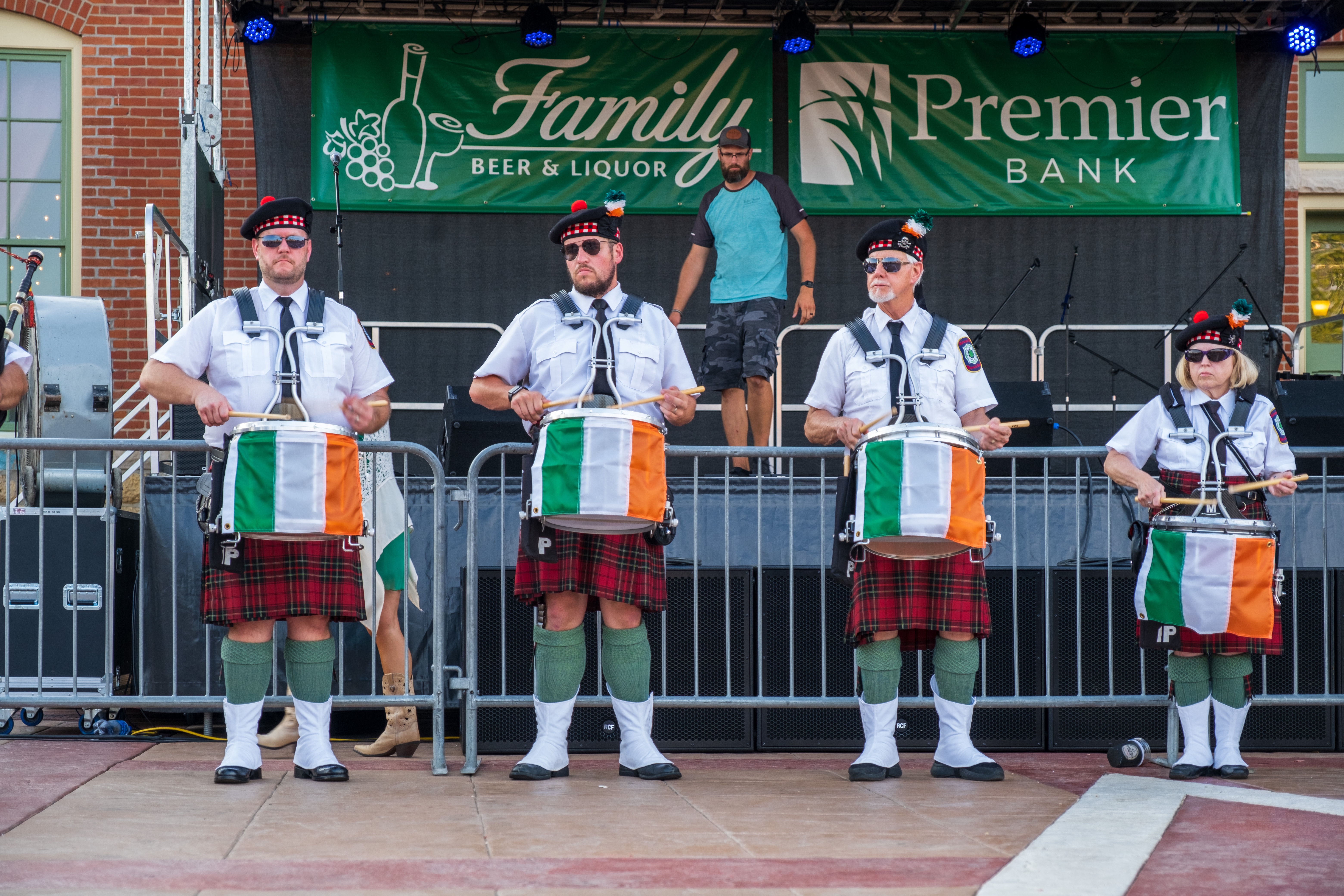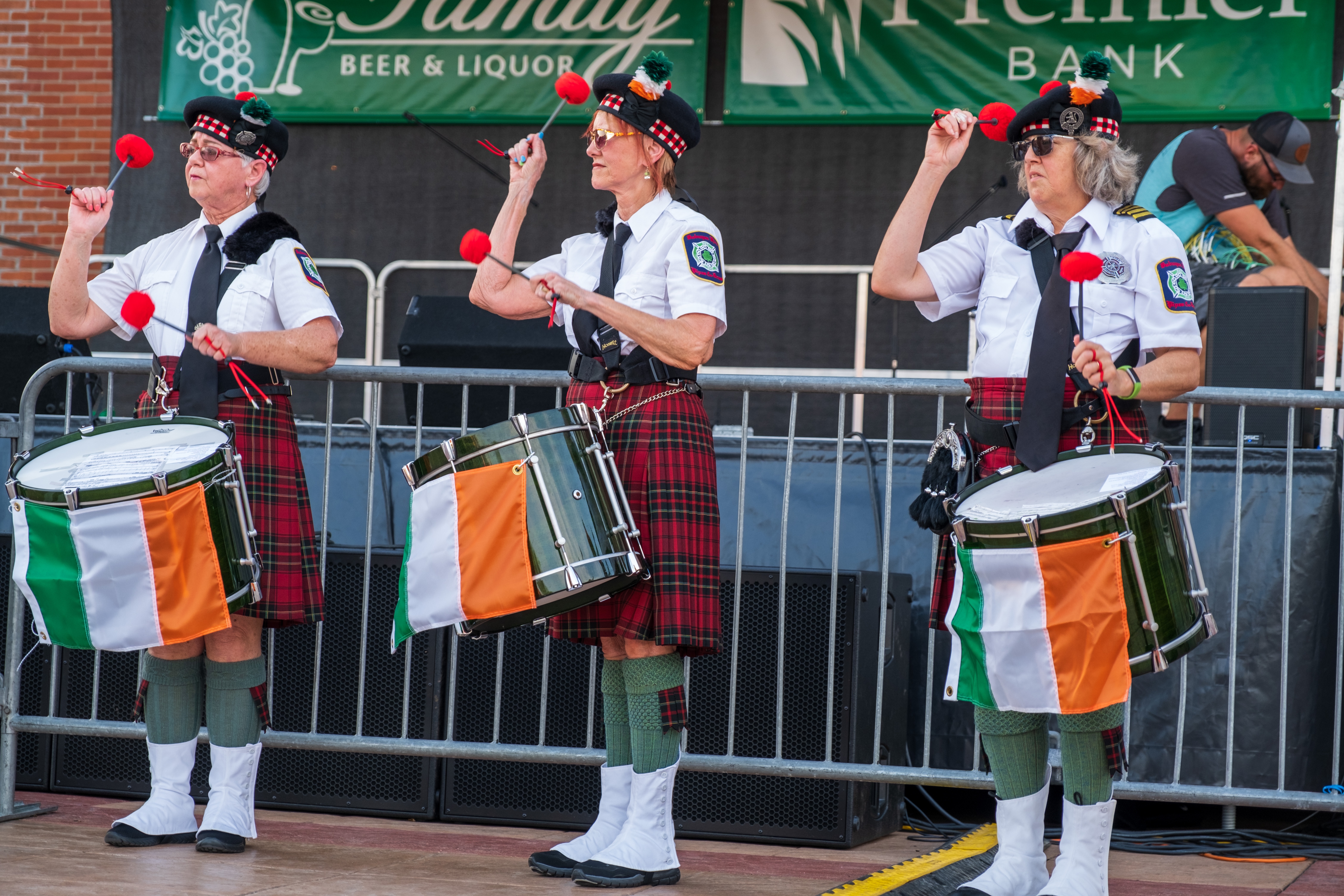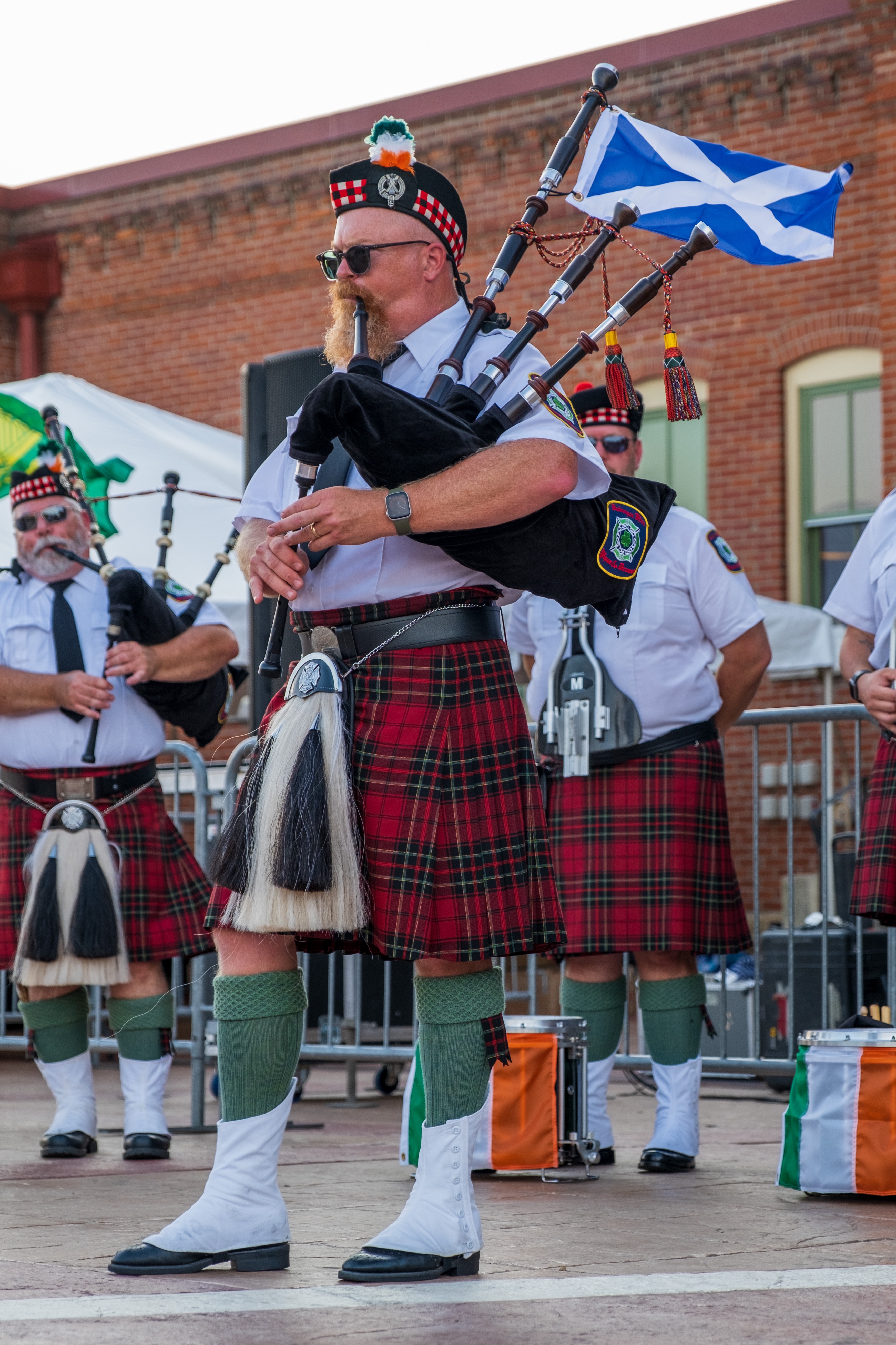 ‘Twas a fine day along the Mississippi River in Dubuque, Iowa, yesterday. After a year’s pandemic hiatus, the Hooley was back. The Dubuque Fire Pipes & Drums were proud to be part of a robust line-up. It was good to “celebrate living,” as MC and musician Ian Gould reminded all of us throughout the day.