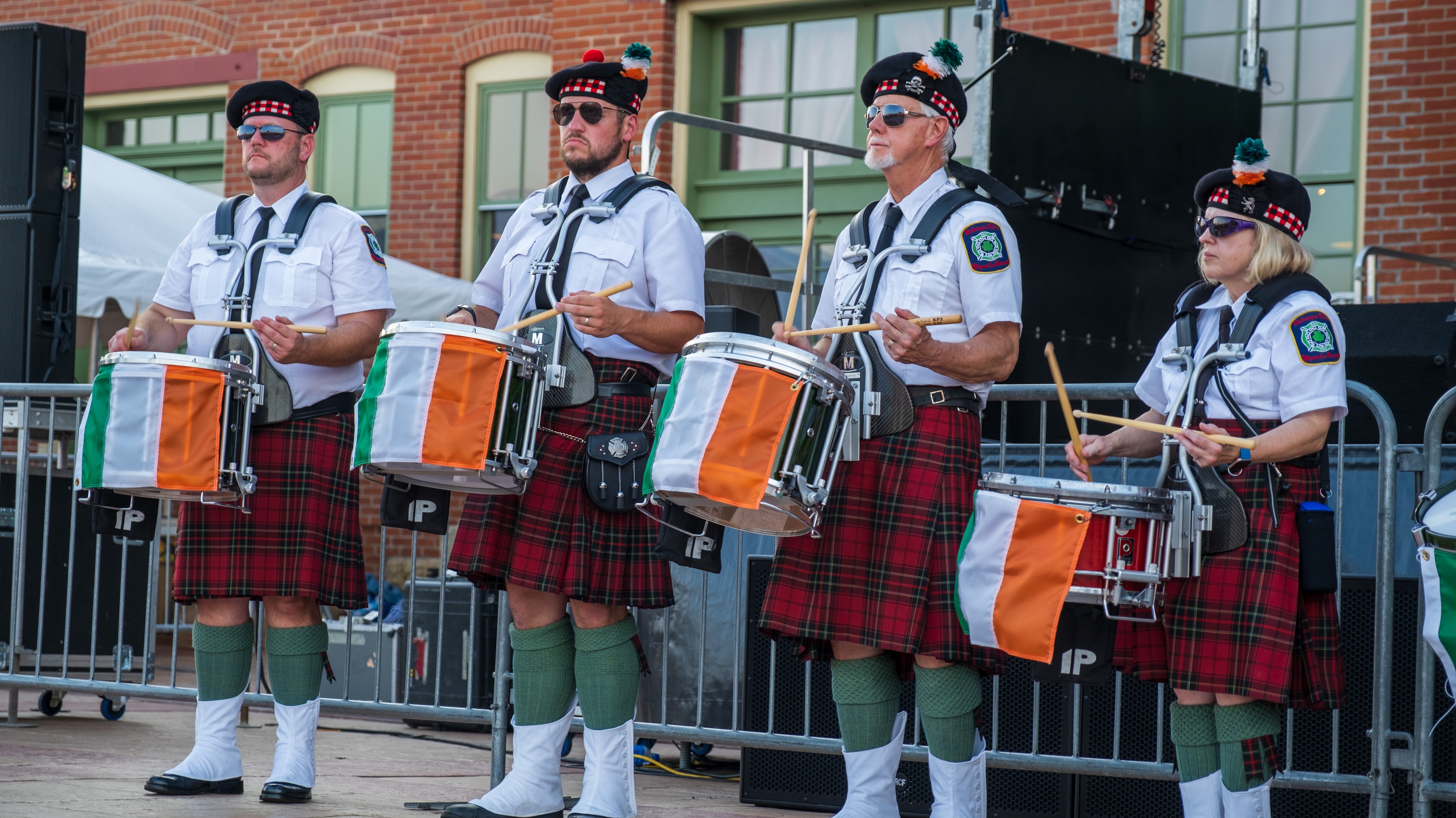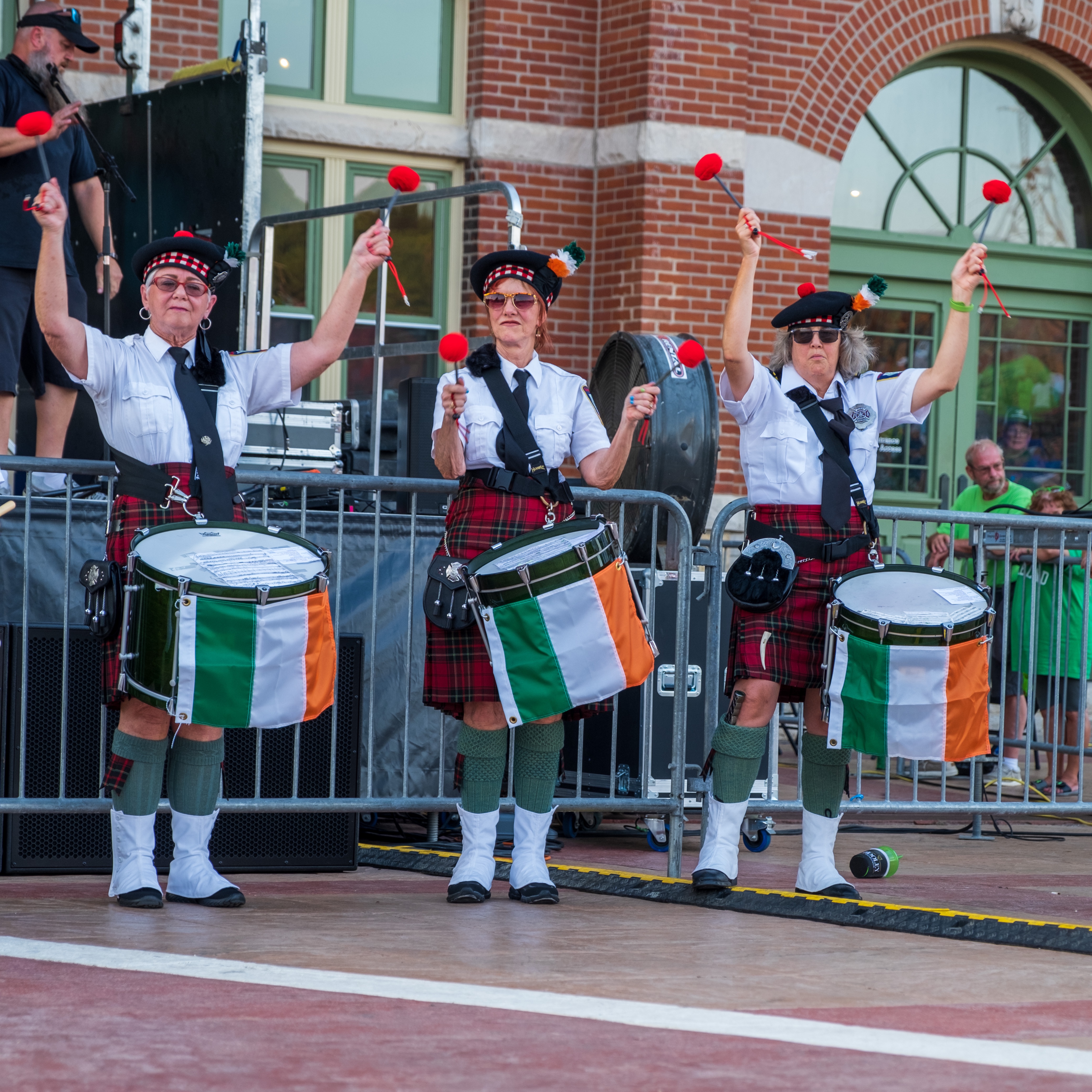 We had the pleasure of leading the hosts of the event, local members of the Ancient Order of Hibernians and Auxiliary, together with a color guard representing all service branches of the United States. Our primary set came later in the evening, when we rocked a half-hour of old standards and new tunes. Our drummers provided rat-a-tat-tatted a rock-n-roll-worthy salute mid-set. And to top it all off, not a single train rolled over the bridge while we were playing!
